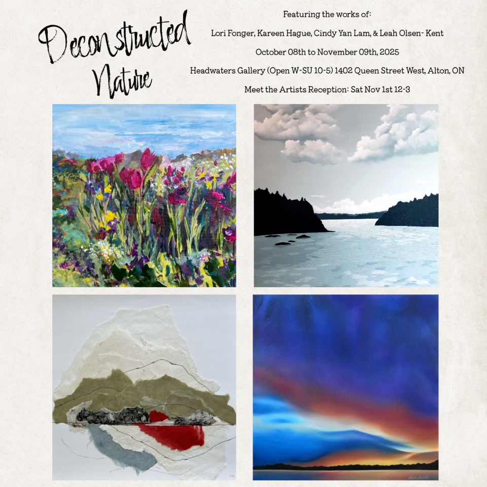 Deconstructed Nature runs from October 8 to November 9, 2025 in the Headwaters Arts Gallery in the Alton Mill Arts Centre.