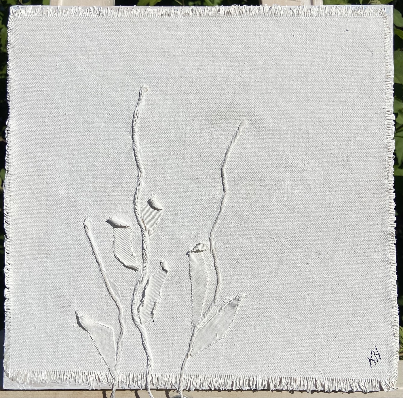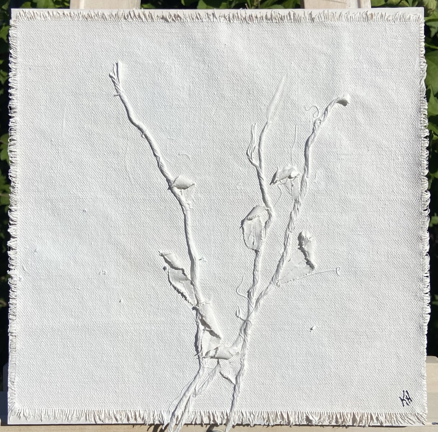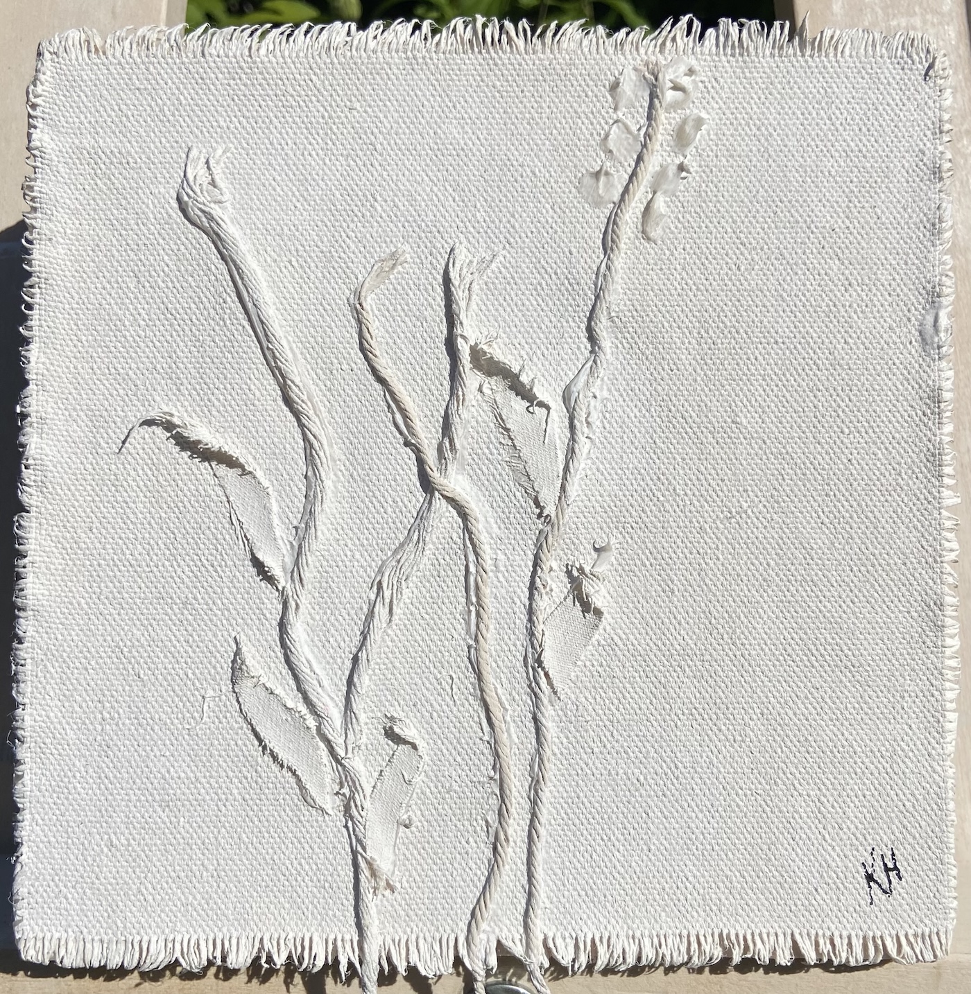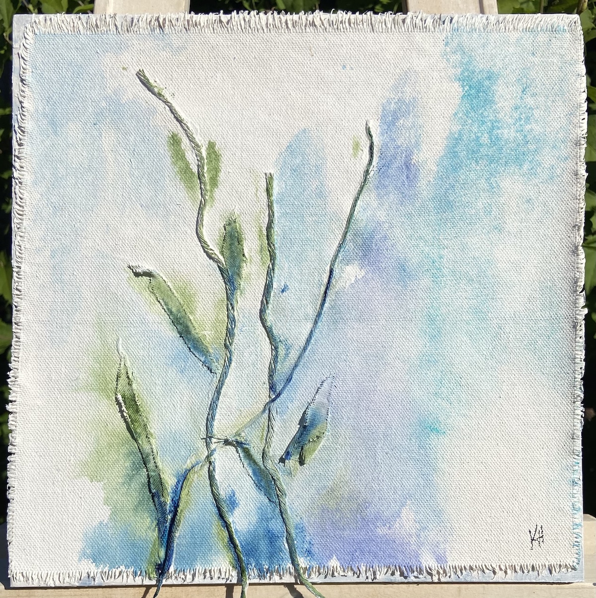 Leah Olsen-Kent’s paintings exploration of a moment, a fragment in time cherished and explored. Through layers of spray paint, oil paint, and foraged plant material she creates intricate compositions that emphasize the delicate interplay of light and shadow. “My process is deeply intuitive, reflecting both the structured patterns of nature and its unpredictable spontaneity”, says Leah from Cambridge.