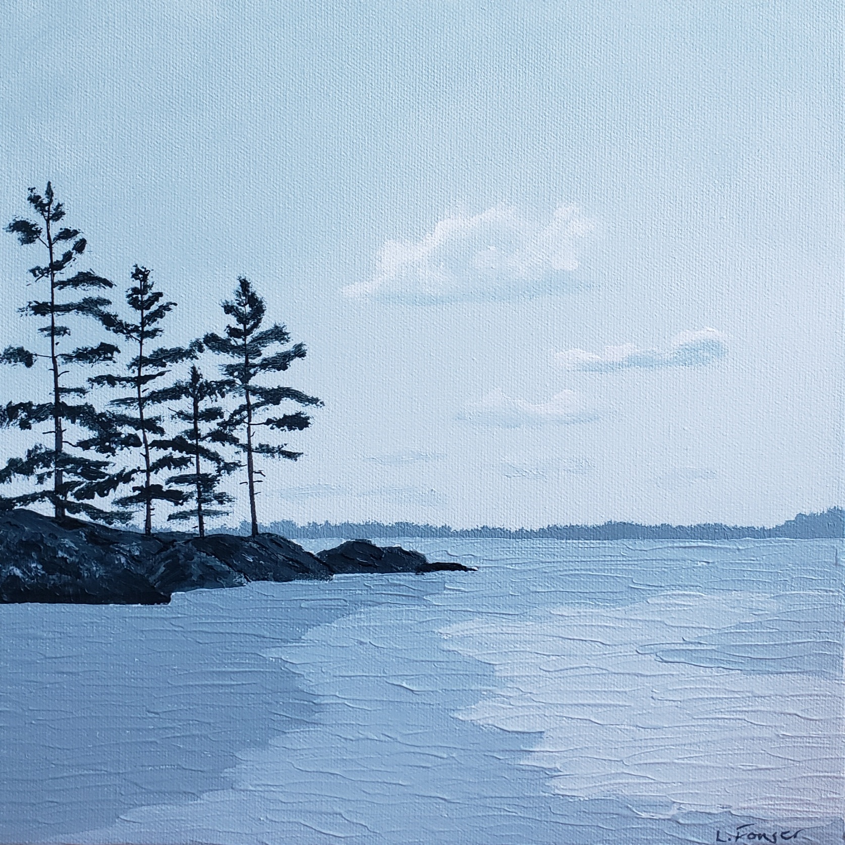 Lori Fonger is a self-taught artist from Toronto, Ontario. “My artwork aims to provide this same sense of peacefulness and escape. As a result, the colour palette is simplified with a monochromatic colour scheme and subtle shifts in values to keep that sense of peacefulness as well as provide perspective”, says Fonger.