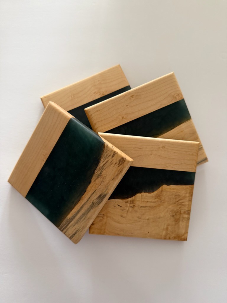/ George McCart – Coaster Set #1 – Blue Stain Maple with Epoxy(4) – 4 x 4