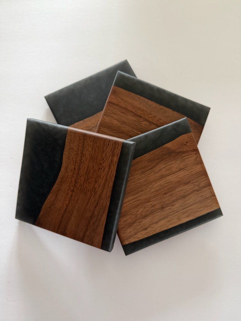 George McCart - Coaster Set #6 - Black Walnut with Epoxy(4) - 4 x 4 quantity