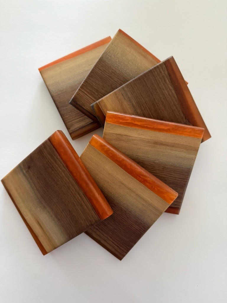 / George McCart – Coaster Set #9 – Black Walnut with Epoxy(6) – 4 x 4