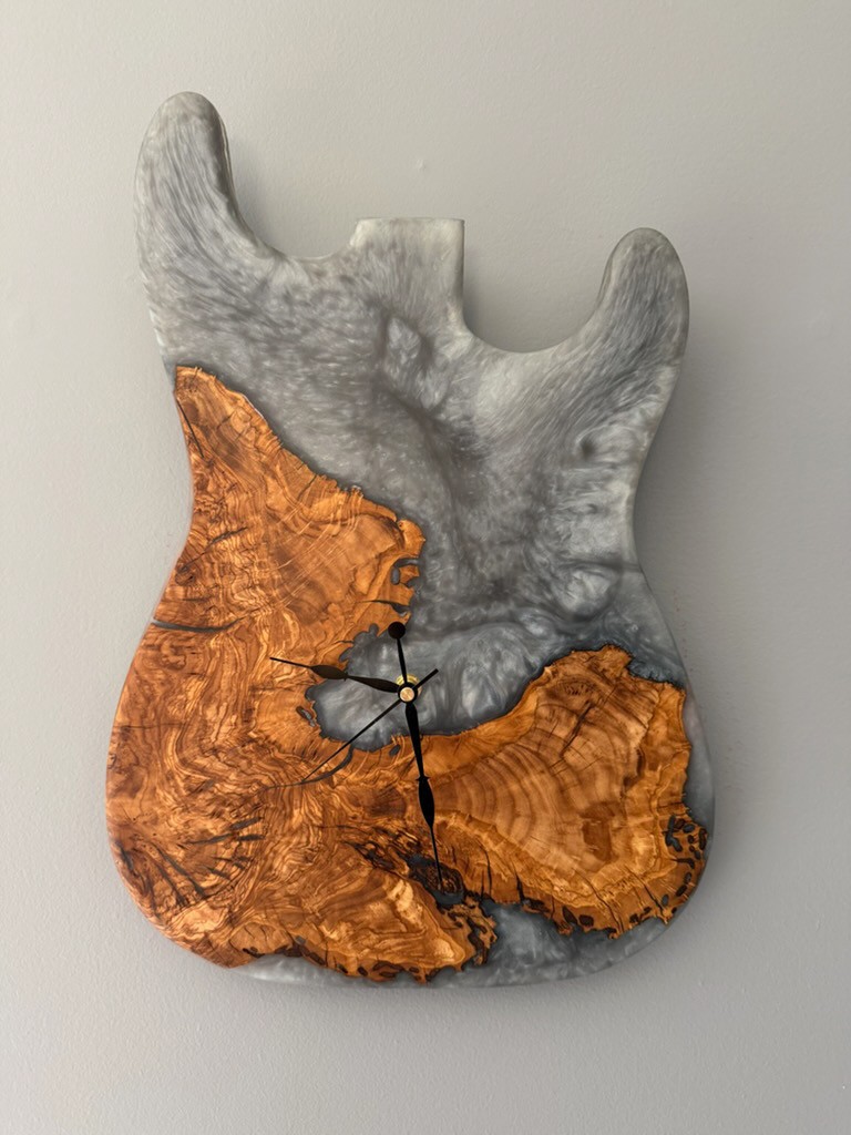 / George McCart – Guitar Clock #1 – Olive Root with Epoxy – 18 x 12