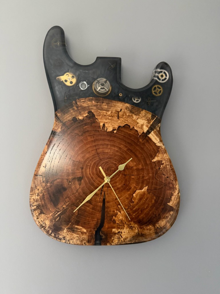 / George McCart – Guitar Clock #4 – Maple with Epoxy – 18 x 12