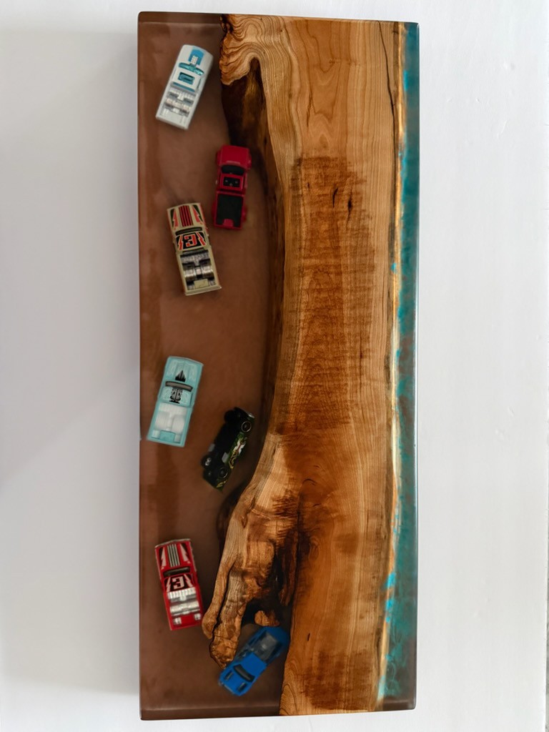 / George McCart – Serving Tray #6 – Maple with Cars in Epoxy – 9.5 x 24