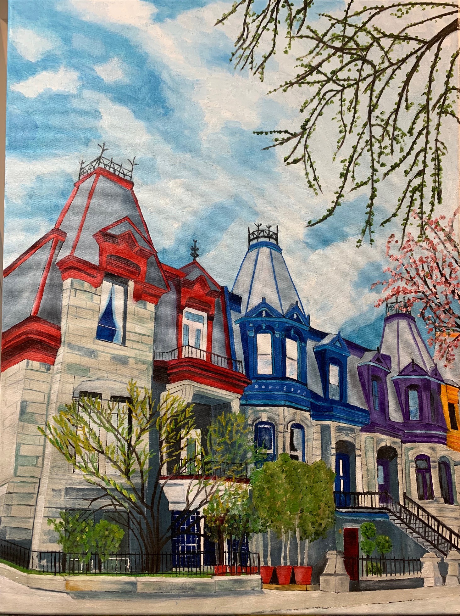 / Marj Gegear – Springtime in St. Louis Square, Montreal – Oil on Canvas – 24×18