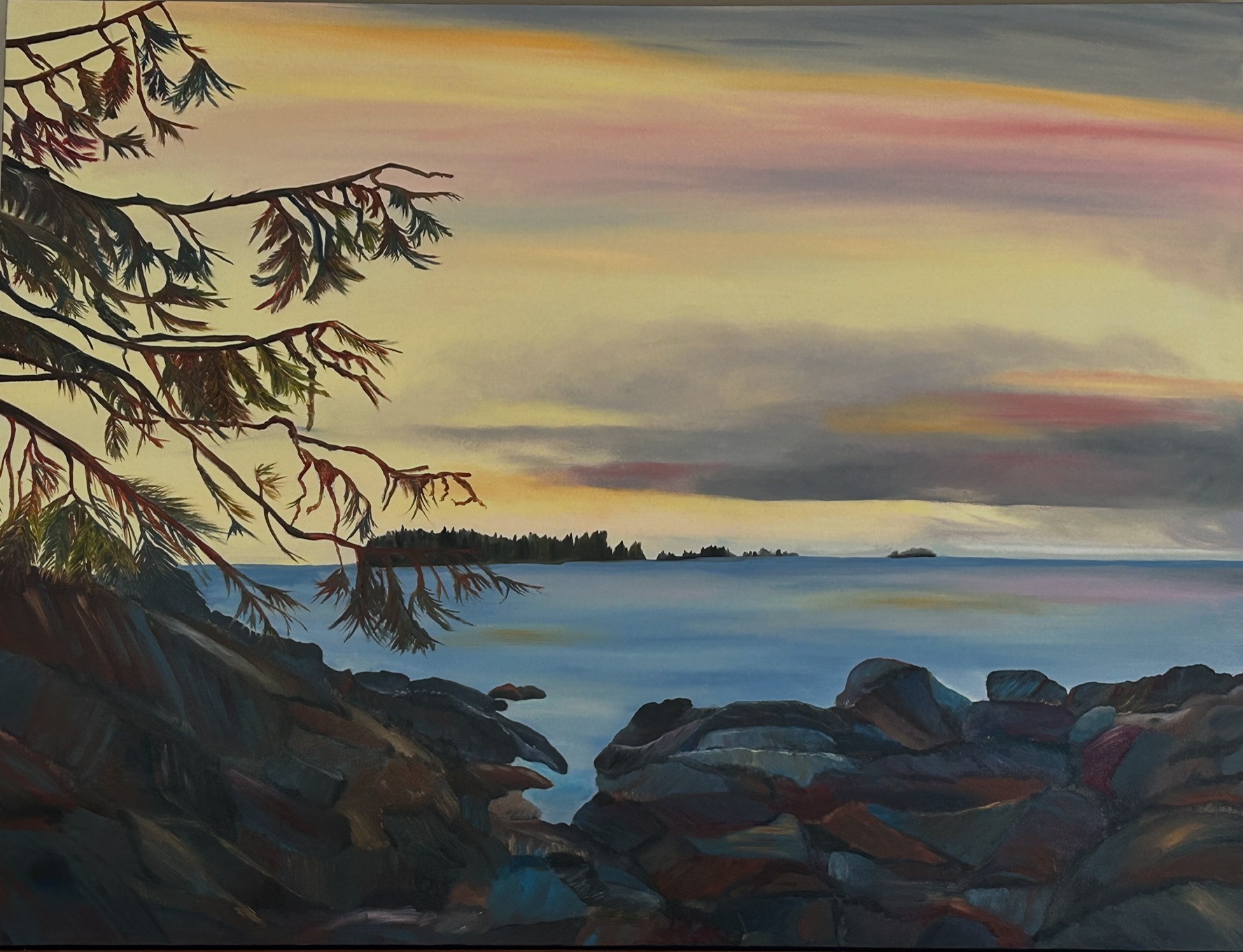 / Marj Gegear – Ucluelet, BC, Brooding Sky – Oil on Canvas – 36×48