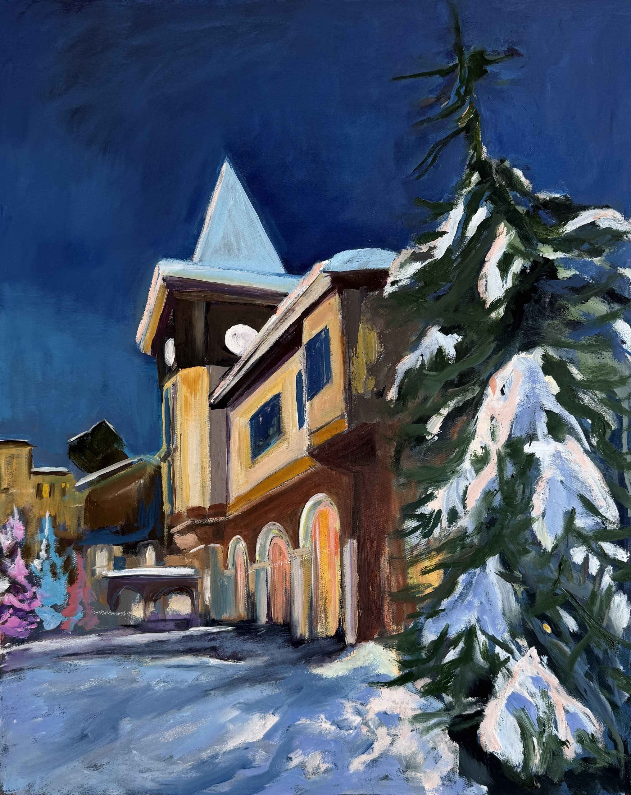 / Natasha Lehman – Sun Peaks Village – oil – 30 by 24